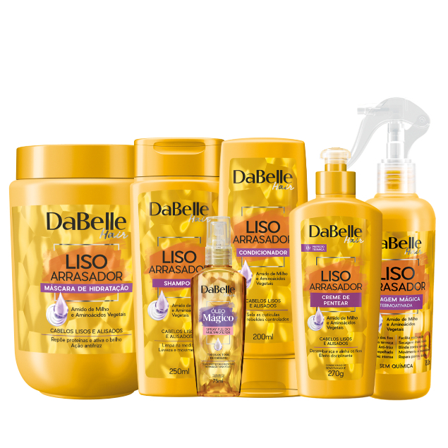 A linha Liso Arrasador da DaBelle é a escolha perfeita para quem deseja manter os cabelos lisos impecáveis, sejam eles naturais ou alisados. Com uma fórmula especialmente desenvolvida para combater o frizz e garantir maciez, essa linha mantém o efeito liso por mais tempo, deixando os fios sedosos e radiantes. Realce a beleza do seu cabelo com Liso Arrasador e arrase todos os dias.